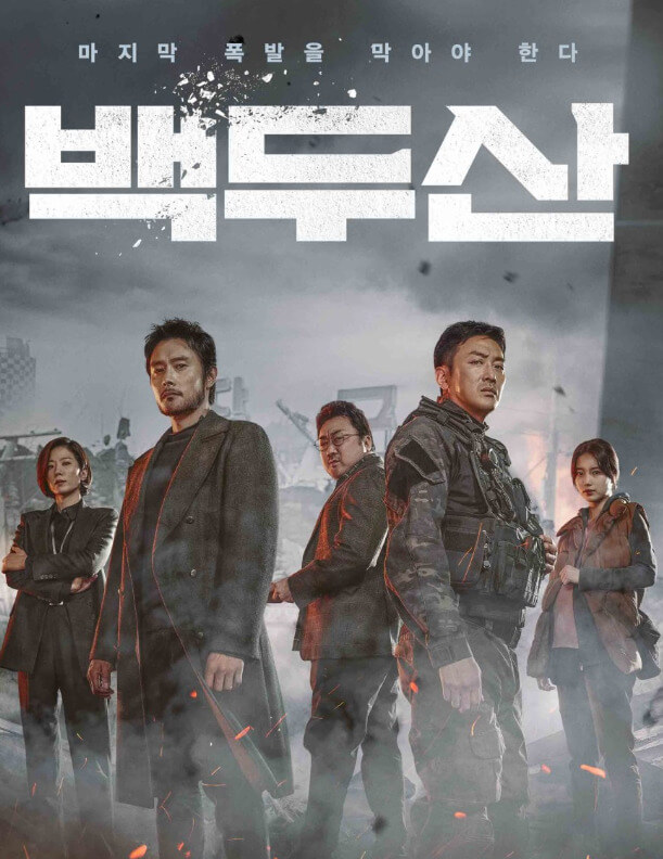 2019년 12월 19일 개봉작으로 이병헌 하정우 마동석 전혜진 수지 님이 출현했다. 영화제목만으로도 궁금증을 자아낸다. 이 영화의 줄거리는 백두산의 마지막 폭발을 막아야 한다 이다. 전역을 앞두고 있는 조인창(하정우) 대위 오늘이 전역일인데도 출동을 나가야 하는 사실에 짜증이 난 상태다. 조대위의 부인 지영(배수지)은 임신을 한 상태이고 아들인지 딸인지 궁금하면 집에 일찍 들어오라고 한다. 집으로 가던 인창은 핵무기 해체를 기념하는 행사가 진행하는 도중 갑자기 지진이 일어나고 백두산이 화산 폭발을 일으킨다. 전유경(전혜진) 민정수석은 예전부터 폭발을 예고한 강봉래(마동석) 교수를 불렀고, 그는 제주도를 제외한 모든 지역에 큰 피해를 입힐 거라 예상한다. 백두산에 있는 마그마 방이 터지기 전에 다른 쪽 구멍을 내 압력을 줄여야 한다고 설명하고 그러기 위해서는 엄청난 에너지가 필요했고 그 힘을 낼 수 있는 건 북의 핵무기 밖에 없는 상황이다. 그리고 한국에서 포섭한 인물인 리준평(이병헌)은 현재 황해도 지역의 수용소에 수감되어 있었고 그를 찾아 조인창 대위와 부대 인원들이 출동해 리준평을 찾고 계획을 진행하고자 한다. 조인창은 임신한 아내 지영을 미군 편으로 피난하는 조건을 듣고 작전에 참여하게 되고, 아내 지영에게 전화해 사실을 전하고 아내는 늦게 오지 말고 직접 아기 얼굴 보라는 말을 들으며 출동하게 됩니다. 수송기를 타고 북으로 향하는데, 대기에 있던 화산재가 문제가 되면서 항공기가 추락하게 된다. 결국 전투부대는 전원 사망하고 조인창은 백업 부대를 요청하지만 성사되지 않아 결국 모든 임무를 직접 수행하게 된다.